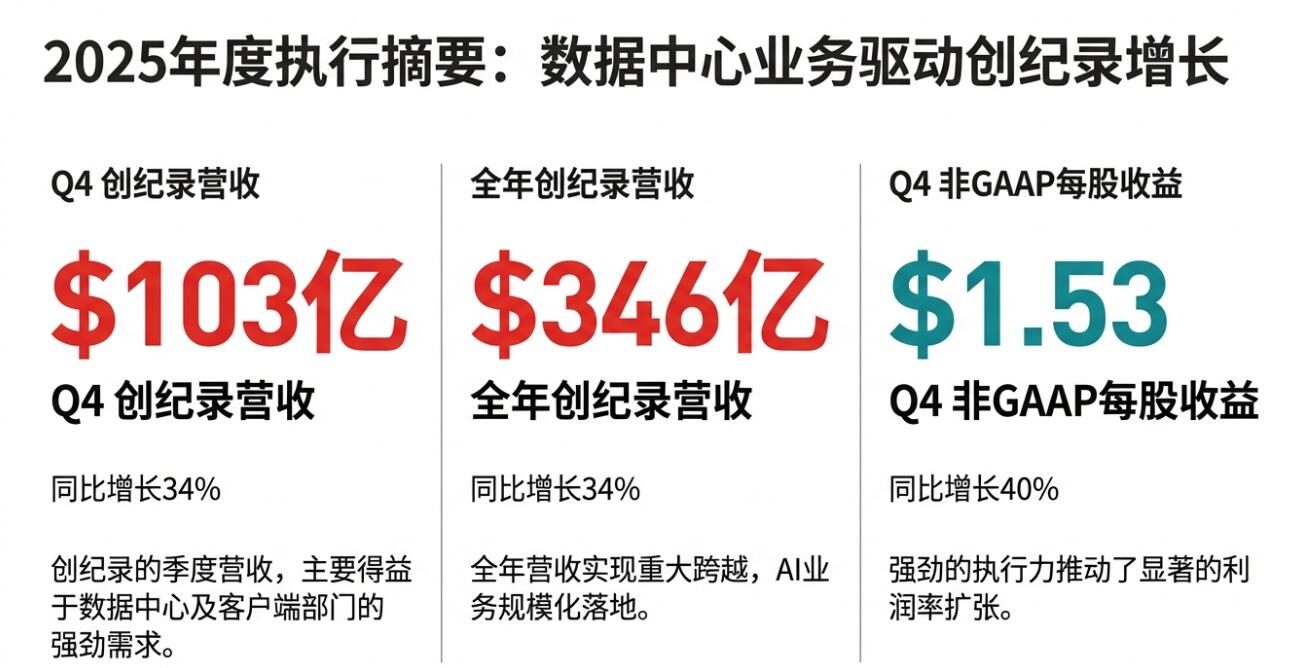 四季度調整後每股收益(EPS)為1.53美元,按年增長40%,較三季度將近60%的按年增速放緩,仍比分析師預期的1.32美元高近16%,超出幅度明顯,說明毛利和費用結構在非 GAAP 口徑下對盈利貢獻較好。