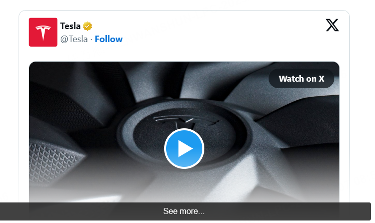股價上漲的邏輯在於,特斯拉在推特上發佈了一條預告「週二將有重大公告」的推文,並附上一段視頻,視頻中出現了一個帶有特斯拉標誌的旋轉輪狀物。