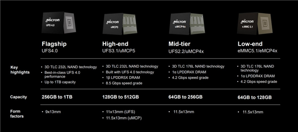 目前這款存儲已經出樣,提供256GB、512GB和1TB三種規格,預計很快就會應用到智能手機上。