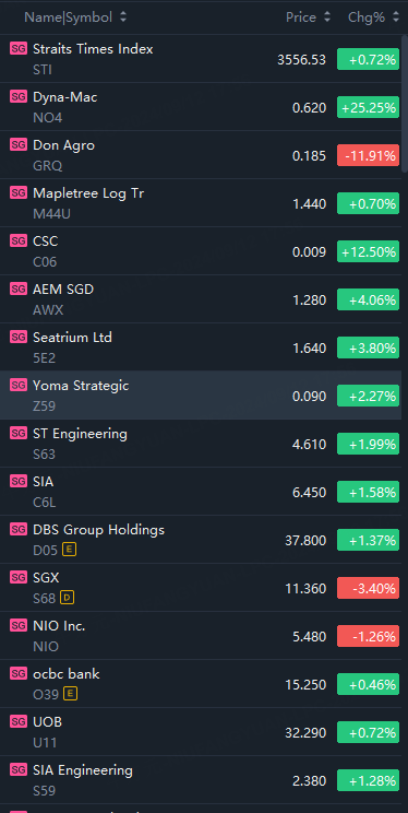 The Straits Times Index (STI), a key benchmark for the Singapore Exchange, ranged between 3,535.45 and 3,559.10 throughout the day. It ended the session at 3,556.53, up 25.36 points or 0.72% compared to Wednesday's close.