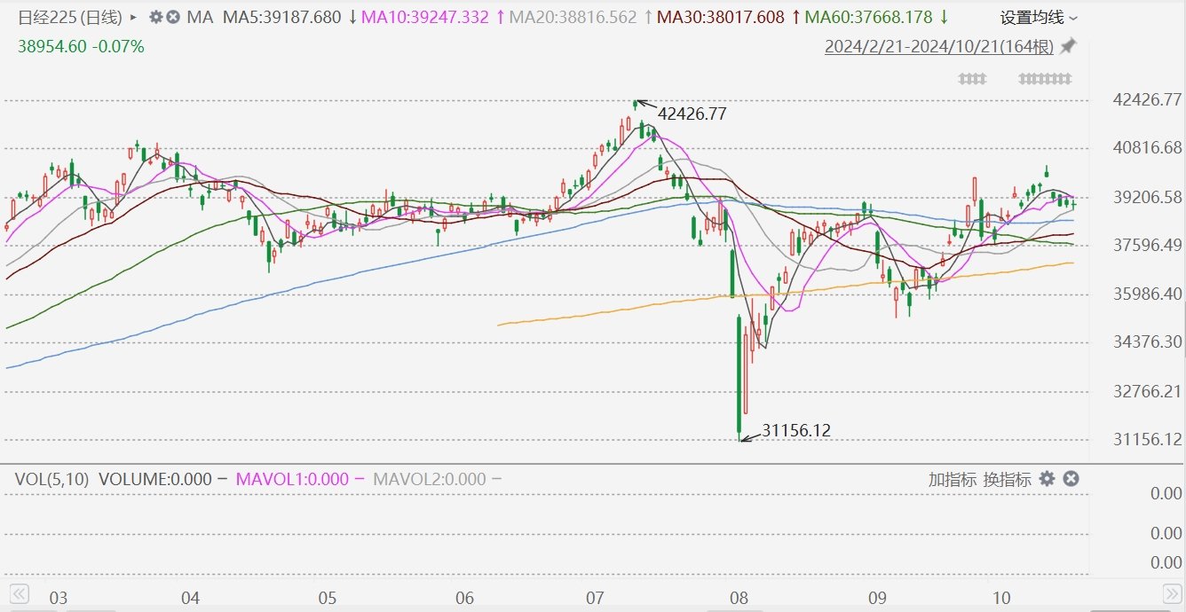 格隆匯10月21日|日經225指數收跌0.07%,報38954.6點。