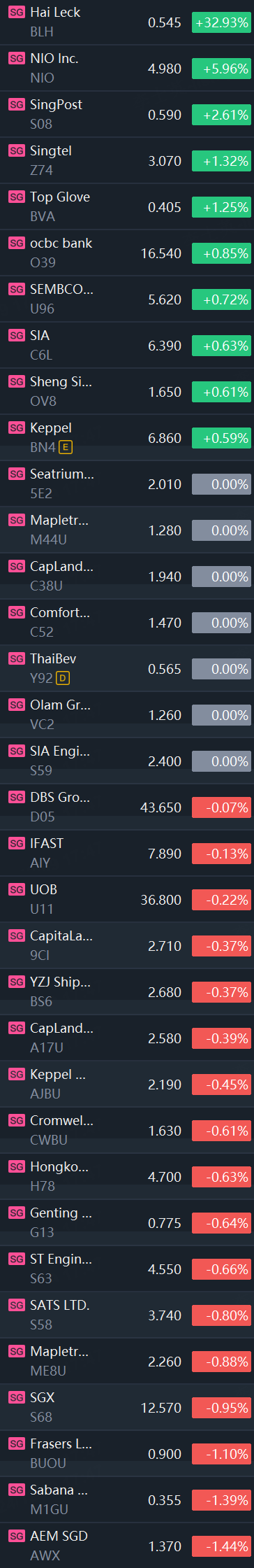 In company news, shares of Hai Leck Holdings (SGX:BLH) surged nearly 33% after its founder, Cheng Buck Poh, through Cheng Investment Management, made an offer to fully acquire the company's issued ordinary shares, via a scheme of arrangement.