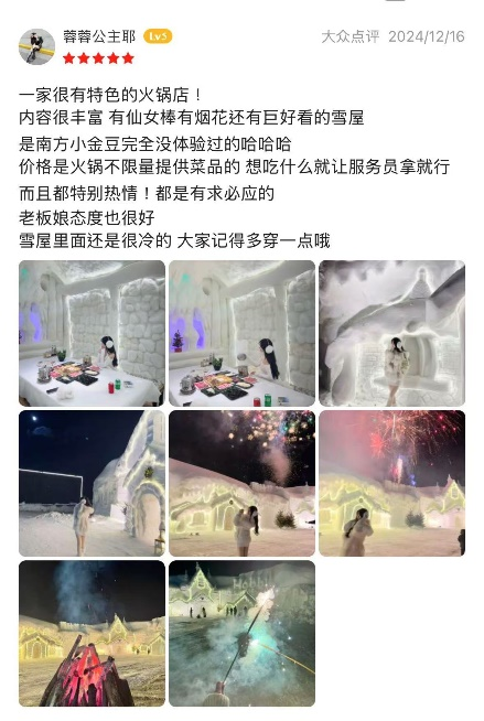 在長白山撫松縣原鄉湖附近,趙女士經營着一家特色雪屋火鍋,「12月剛開業沒多久,在美團上線了團購套餐,現在的雪屋火鍋都已經預訂到2025年過年了。」趙女士表示,門店生意火爆,每天從早上10點就開始接待遊客,由於生意太火爆,門店計劃再增設多個雪屋以容納更多遊客。