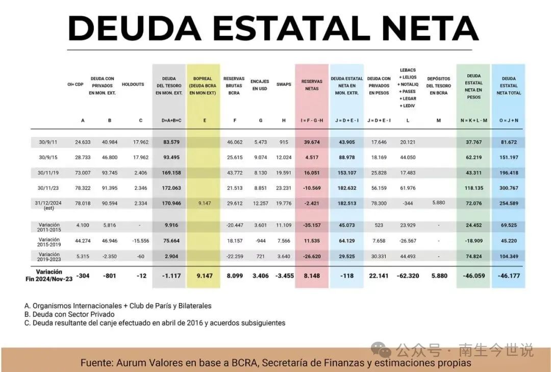 意思是:米萊政府不僅在積極償還外幣債務,手裏面攥着的美元等外幣數量也增加了。並將其中的一部分外幣兌換成比索,償還給阿根廷人民,使得「按比索計價的本幣債務大幅縮減」。