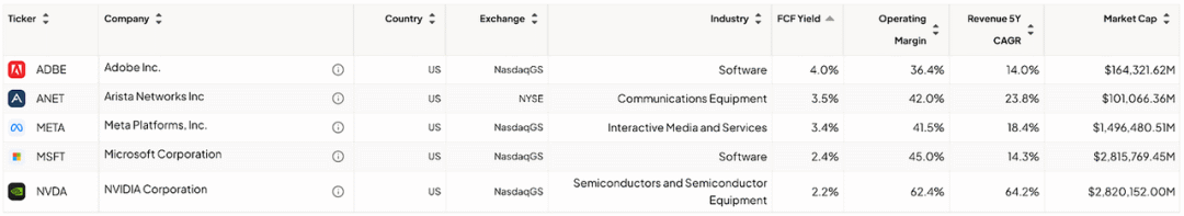 為了更好地理解這一壯舉,請注意,美國只有 5 家市值超過 1000 億美元的公司在過去 5 年中實現了 10% 的複合年增長率,同時實現了 35% 以上的營業利潤率。Adobe是所有這些公司中價格最便宜的,而且價格優勢明顯: