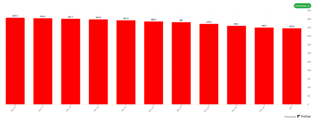 作為一名着眼長遠的 Adobe 股東,分析師必須說我歡迎股價下跌。這不僅能夠繼續建立自己的倉位,還讓管理層能夠繼續回購股票。管理層連續將公司流通股減少了 1%(考慮到稀釋),去年股票數量下降了 4%: