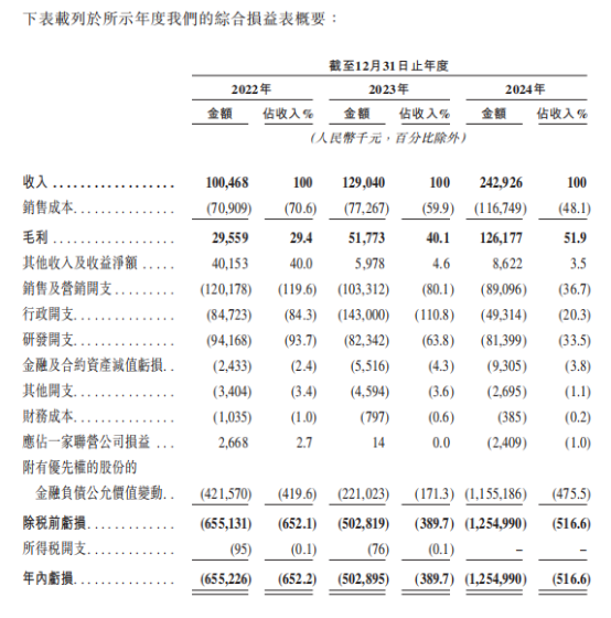 財務方面,由於持續的資源投入及發行附有優先權的股份等,公司流動負債和總負債額保持較高水平。招股書顯示,截至2022年、2023年及2024年底,公司流動負債淨額分別為20.39億元、24.49億元、36.87億元;負債淨額分別為20.13億元、24.24億元以及36.76億元。