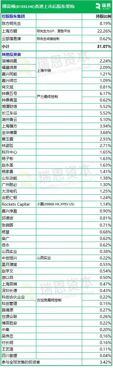 招股書顯示,博雷頓在上市後的股東架構中,控股股東陳方明先生合共控制約31.07%的投票權。陳方明,2004年7月畢業於華南理工大學工程力學專業。