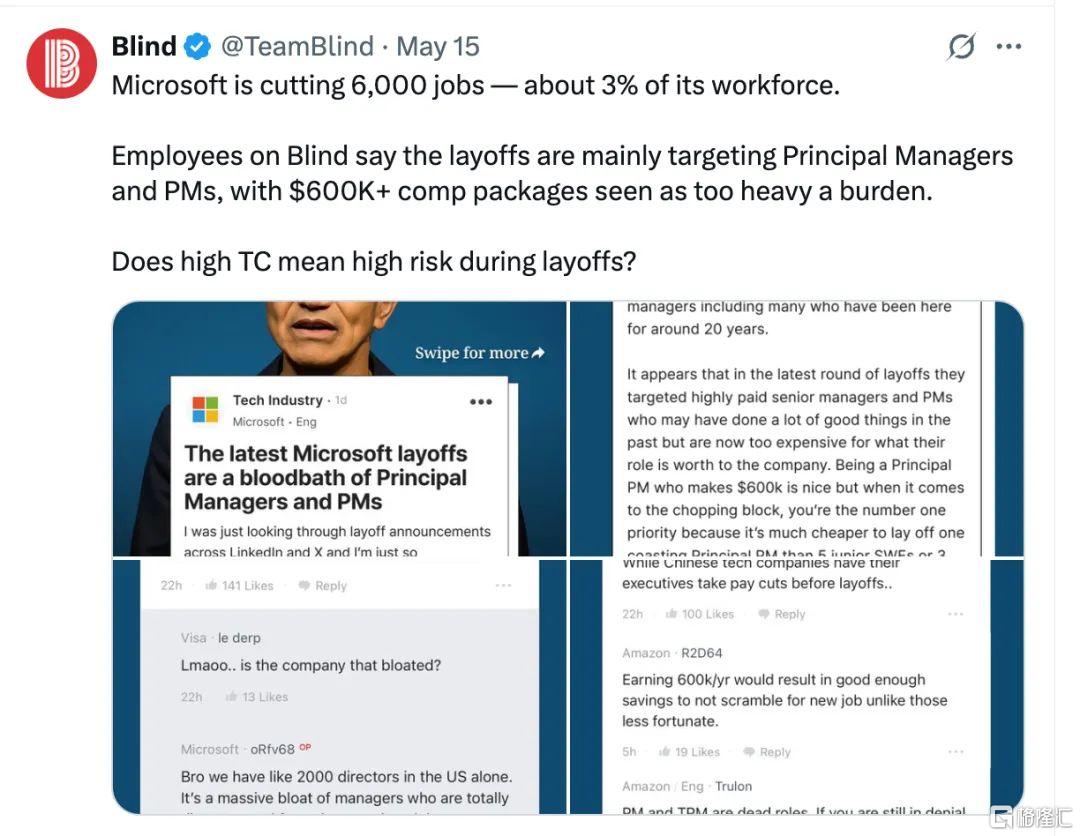 作為螺絲釘的員工,不僅沒有資格分享榮耀,還得面臨被踢出局的風險:微軟宣佈裁員6000人,佔全球員工的3%。