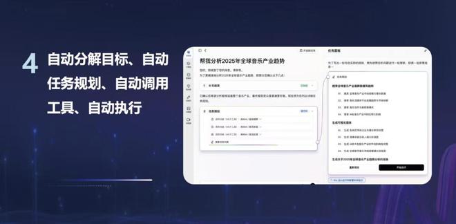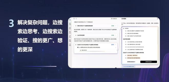第一,內置智能體任務規劃,這也是AI搜索解決複雜需求的關鍵,避免用戶手動拆解任務,實現「搜索即執行」。