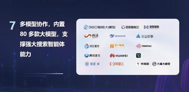 7.內置國內80餘款大模型,針對不同類型的問題,選用合適的模型或模型協作解決問題,自主執行完成任務直至交付結果;