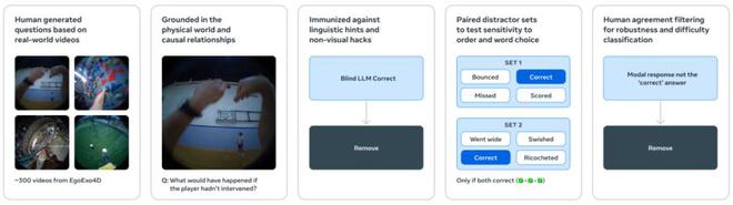 (來源:Meta)CausalVQA 則是衡量模型回答與物理因果關係有關問題的能力,包括反事實問題(如果……會發生什麼)、預期問題(接下來可能會發生什麼)以及規劃問題(為了實現目標,下一步應該採取什麼行動)。