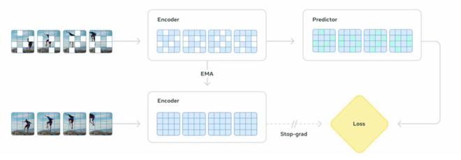 V-JEPA 2 是去年發佈的 V-JEPA 模型的升級版。它主要基於視頻進行訓練,擁有 12 億參數,採用自監督學習方法。它的英文全名是聯合嵌入預測架構(joint-embedding predictive architecture,縮寫即為 JEPA)。
