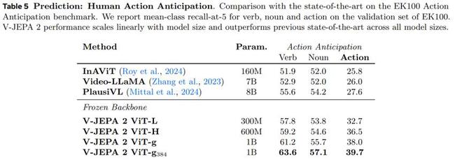 (來源:Meta)在人類動作預期任務中,它在 Epic-Kitchens-100 數據集上達到了 39.7% 的 recall-at-5 分數,超越了現有所有任務特定模型。
