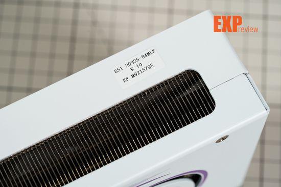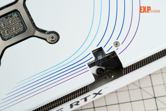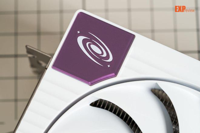 顯卡左上方還有一個紫色的電鍍標籤,與整條條帶相呼應,上面印有白色的星際系列LOGO,提醒用戶這張顯卡的所屬系列。