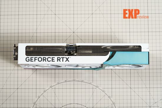 視頻輸出接口這邊和很多RTX 50系一樣,標準的3×DP 2.1b和1×HDMI 2.1接口。其中DisplayPort 2.1b支持UHBR 20,提供了最大80Gbps的帶寬,可在無DSC狀態下支持4K@240Hz輸出。在這裏也可以看出顯卡的厚度約為2.5槽,整體重量為1120g左右,分量還是相當紮實的。