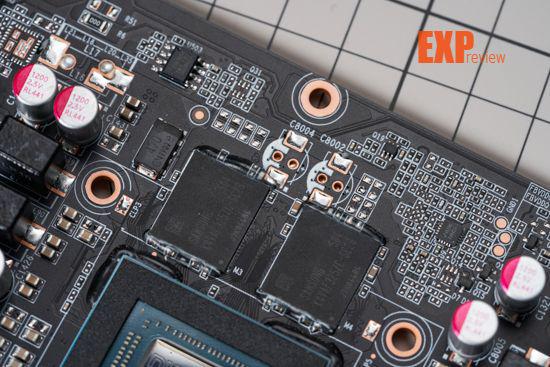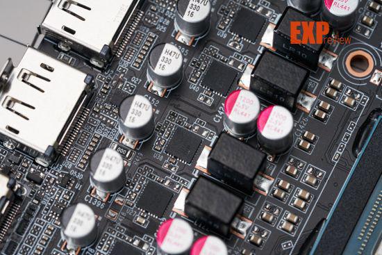 供電設計上,5相顯存供電位於GPU核心的左側,右側則是2相顯存供電,所有供電均採用Dr.MOS,型號是uPI的uP9646A,最大支持50A的電流。核心的供電控制芯片設定在背面,型號是「老朋友」uPI uS5650Q,最高支持4相供電;顯存供電則在正面上方,同樣來自uPI,型號為uP9529Q,支持3相供電。