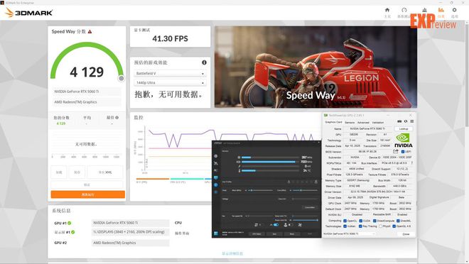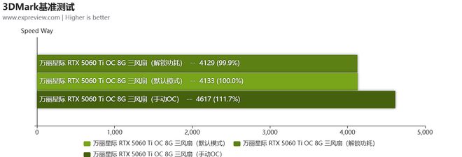 前面我們提過RTX 5060 Ti 8G 星際的最大功耗可以解鎖到200W,那麼這部分的超頻測試就基於這個來進行。我們先來試試解鎖限制後的顯卡性能表現,測試項目依舊為3D Mark的Speed Way測試。