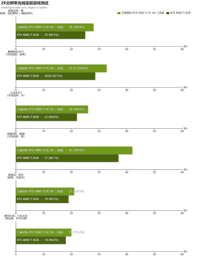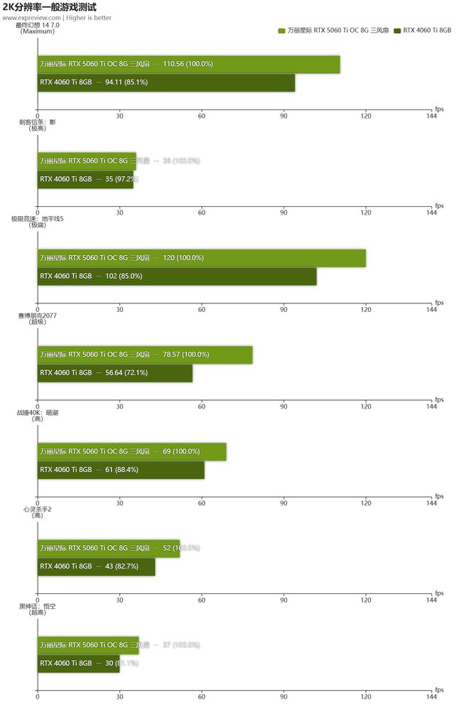 先來看看2K分辨率下星際 RTX 5060 Ti 8G的實際表現。