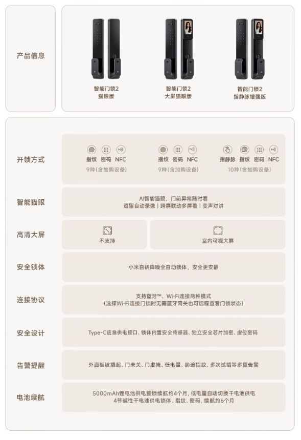 IT之家 6 月 21 日消息,小米智能門鎖 2 大屏貓眼版現已在京東平台上架並開啓預約,售價 1599 元,6 月 24 日 10:00 開售。