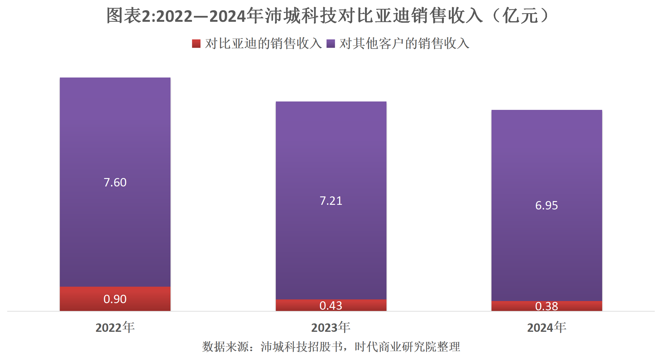 然而,即使是相對較為穩定的前五大客戶之一比亞迪,報告期內其對沛城科技的銷售收入貢獻也呈現逐年下降的態勢。