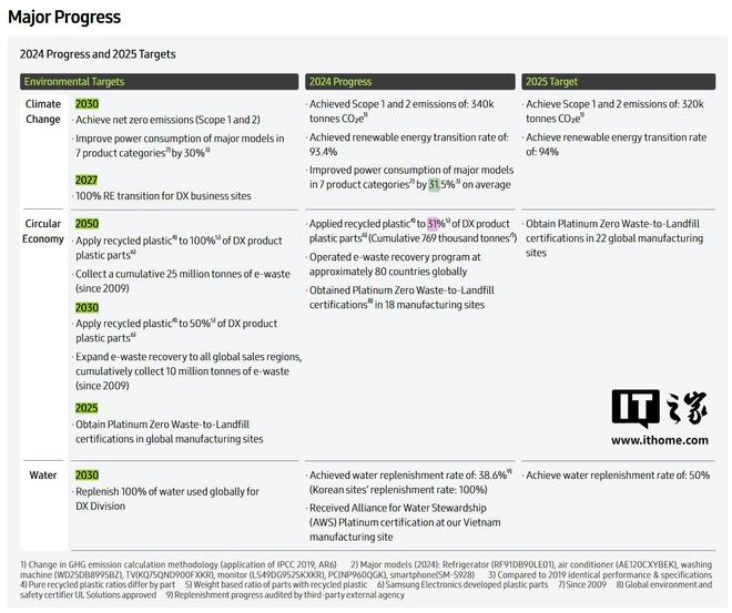 IT之家 6 月 28 日消息,根據三星最新公告的 2025 年可持續發展報告,在 2024 年發售的 Galaxy 智能手機和其它產品中,所使用的塑料部件中,可回收材料的佔比達到 31%。