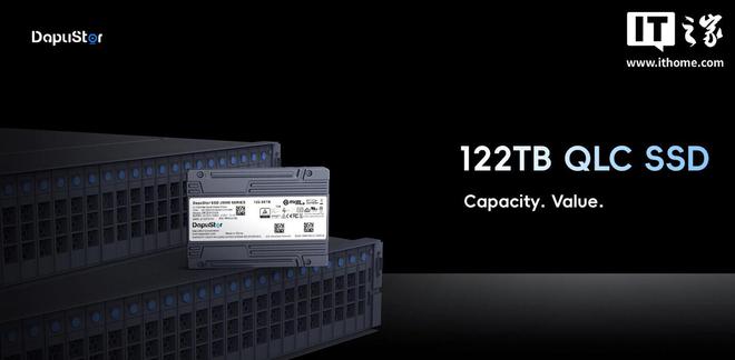 IT之家 7 月 4 日消息,據 DapuStor 新聞稿,該公司宣佈推出一款 J5060 QLC 固態硬盤,容量高達 122.88TB,再次刷新高密度閃存存儲的行業上限。