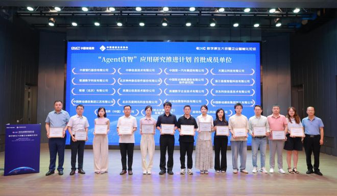 會上正式發起「Agent啓智」應用研究推進計劃,並公佈首批19家成員單位。「Agent啓智」應用研究推進計劃由中國信通院數字原生研究團隊依託「數字原生推進方陣(DNA)」發起,旨在聯合政產學研用各方的智慧和創新能力,共同推動AI Cloud Agent應用研究的發展,進一步實現智慧共享和協同創新,尋路智能體時代。何寶宏為首批成員單位頒發證書。