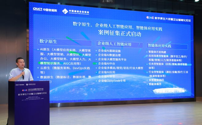 2025年7月4日,由全球數字經濟大會組委會主辦,中國信息通信研究院(以下簡稱「中國信通院」)和中國通信通信企業協會聯合承辦的「2025全球數字經濟大會—數字原生大會暨企業智能化論壇」在北京召開。