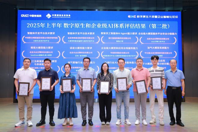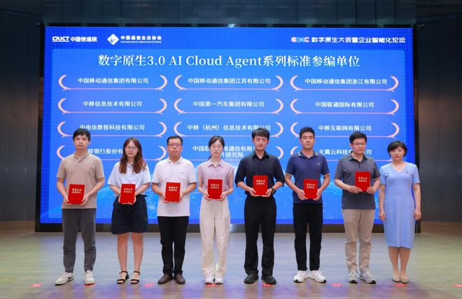 會上公佈了數字原生3.0 AI Cloud Agent系列標準參編單位和企業級AI推進計劃先鋒企業。中國信通院雲計算與大數據研究所副所長慄蔚為12家核心參編企業和17家先鋒企業頒發證書。