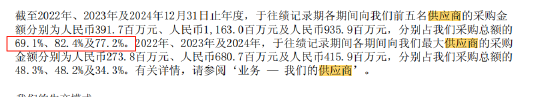 供應商方面:公司從有限數量供應商採購關鍵部件,如芯片等,且採購量集中在少數供應商。2022-2024年,最大單一供應商分別佔總採購量48.3%、48.2%、34.3%,前五大供應商合計分別佔69.1%、82.4%、77.2%。供應商集中度高,一旦供應中斷或關係惡化,將影響運營。
