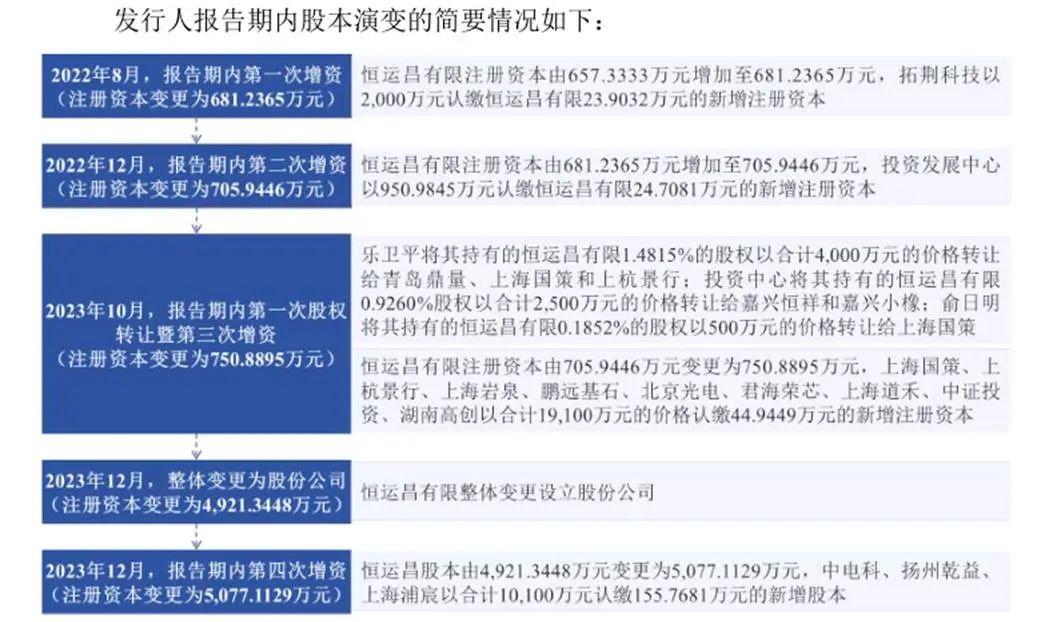 需要看到的是,拓荊科技之所以如此“幫忙”也有着其自身的利益訴求。據招股書披露,早在2020年8月,也就是恆運昌產品逐步批量交付拓荊科技的關鍵時刻,拓荊科技便以2000萬的資金完成了對恆運昌的投資,持股比例爲3.5%。由此計算,恆運昌此時的整體估值約5.7億元。