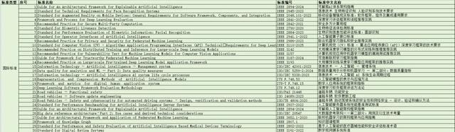 上海單位參與制定的人工智能領域國際標準(部分) 圖片來源:上海市市場監管局美國標準有上海智慧