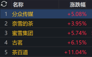 其二,是各種茶飲,蜜雪、茶百道啥的,紛紛暴漲,主要就是補貼的錢,全轉化為他們的新增訂單了,還幫助培育了更多的基礎客戶,調教了用戶習慣,賺麻了。