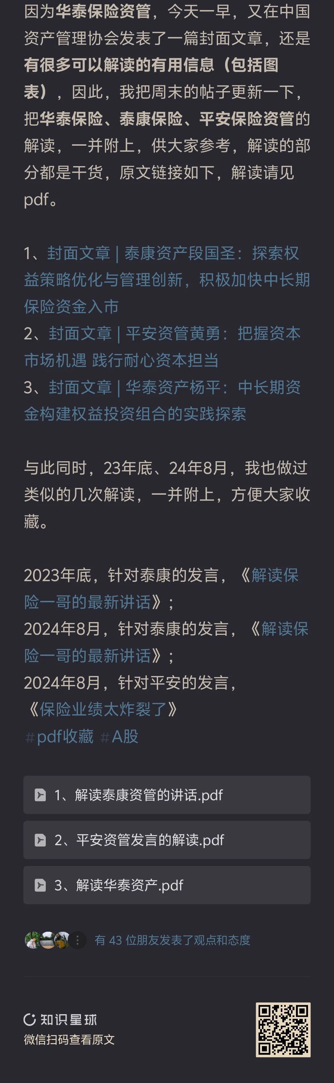 我把這三篇講話的解讀,以及之前做的一些險資相關的解讀,都發布在了星球裏,大概率,對很多人,都是有閱讀價值的,想看的,可以進去星球慢慢學。