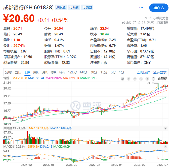 成都銀行,作為西部地區首家萬億城商行,今年股價漲幅超過20%,較2024年初低點已經翻倍。
