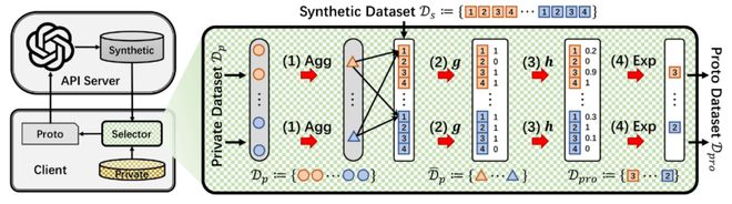 下圖是 PCEvolve 的架構圖,左邊是迭代進化框架:類似達爾文進化論,先讓大模型 API 生成較大數量的候選合成數據(種羣),再經過【選擇器】(自然選擇)進行淘汰,最後將不帶隱私信息的優質合成數據返回給大模型進行下一輪進化。右邊則是進化框架的「引擎」【選擇器】的詳細設計:以隱私數據作為參考(verifier)給合成數據打分(reward),最後根據分數優勝劣汰;其中打分過程,因為用到了隱私數據,需要作隱私保護。