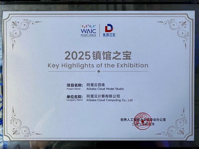 7月26日消息,2025世界人工智能大會公布了最新的鎮館之寶名單,阿里雲百鍊入選。據悉鎮館之寶是大會展覽的最高榮譽,評選維度涵蓋科技含量、市場前景、創新性以及社會經濟效益等,每年有數百款產品參選,最終入選的產品不超過10個。