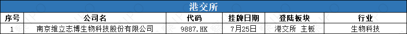7月21日-7月27日,港交所有1家新公司上市。