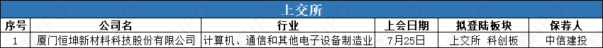 7月21日-7月27日,上交所、深交所均無公司遞交上市申請。