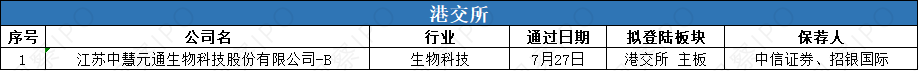 7月21日-7月27日,港交所有1家公司通過聆訊。