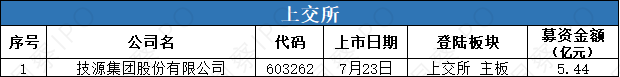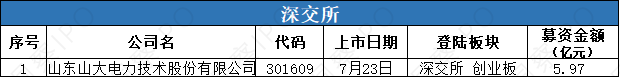 7月21日-7月27日,上交所主板有1家公司上市;深交所創業板有1家公司上市。