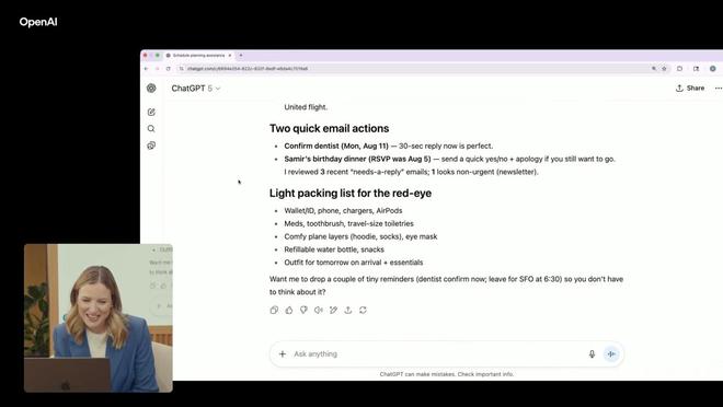 在本次直播過程中,重點介紹了使用 GPT-5 模型用於編程,不過團隊還表示 GPT-5 即將上線語音模式,展示了 ChatGPT 在語音模式下只用一個單詞做出回應的能力,總結了自豪感和偏見爲“人際關係”。
