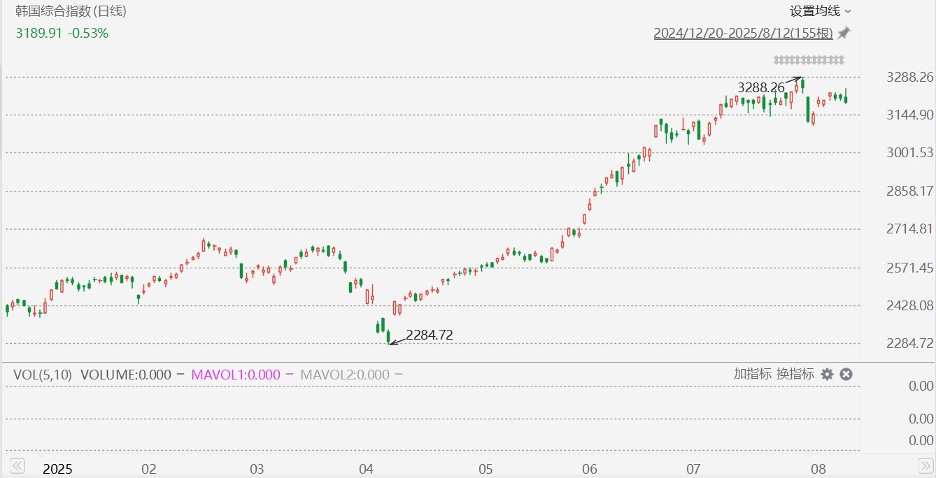 格隆匯8月12日|韓國綜合指數收盤下跌16.86點,跌幅0.53%,報3189.91點。
