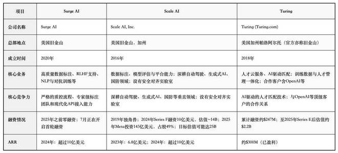 在AI數據提供這方面,SurgeAI雖然晚成立2年,但已經圍繞數據深入做好了相關技術儲備,甚至被稱為「業內早已公認超越了ScaleAI」,而Turing的資源池積累相對更大一些,未來的Turing還有多大上升空間,值得關注。