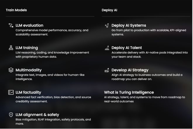 Turing AGI Advancement專門服務全球頂級AI實驗室,幫助提升前沿基礎模型的各項能力。簡單說,就是讓AI模型變得更聰明。他們為OpenAI、Anthropic、Google、Meta等頂尖公司提供高質量訓練數據、代碼生成、模型微調等服務。