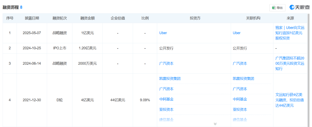 海外市場的爭奪同樣針鋒相對。文遠知行與Uber剛宣佈完合作深化,將Robotaxi服務覆蓋全球15座新增城市。據天眼查顯示,今年5月Uber對其追加1億美元股權投資;幾乎同時,小馬智行宣佈與Uber也達成戰略合作,Robotaxi服務和車隊將在今年下半年接入Uber平臺,並在中東市場率先啓動。