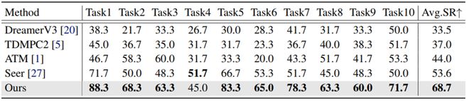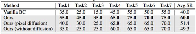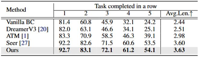 在 CALVIN D-D 數據集上,LaDi-WM 同樣展示了在長時任務中的強大性能(表 2)。