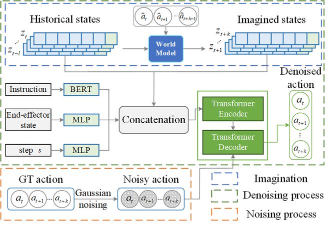 2.一種基於世界模型預測迭代優化的擴散策略:利用世界模型生成未來預測的狀態,將預測的狀態反饋給策略模型,迭代式地優化策略輸出。