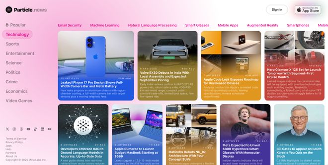 Particle是一家由前Twitter工程師創辦的AI驅動新聞平台,其Particle.news網站於2025年5月正式上線。